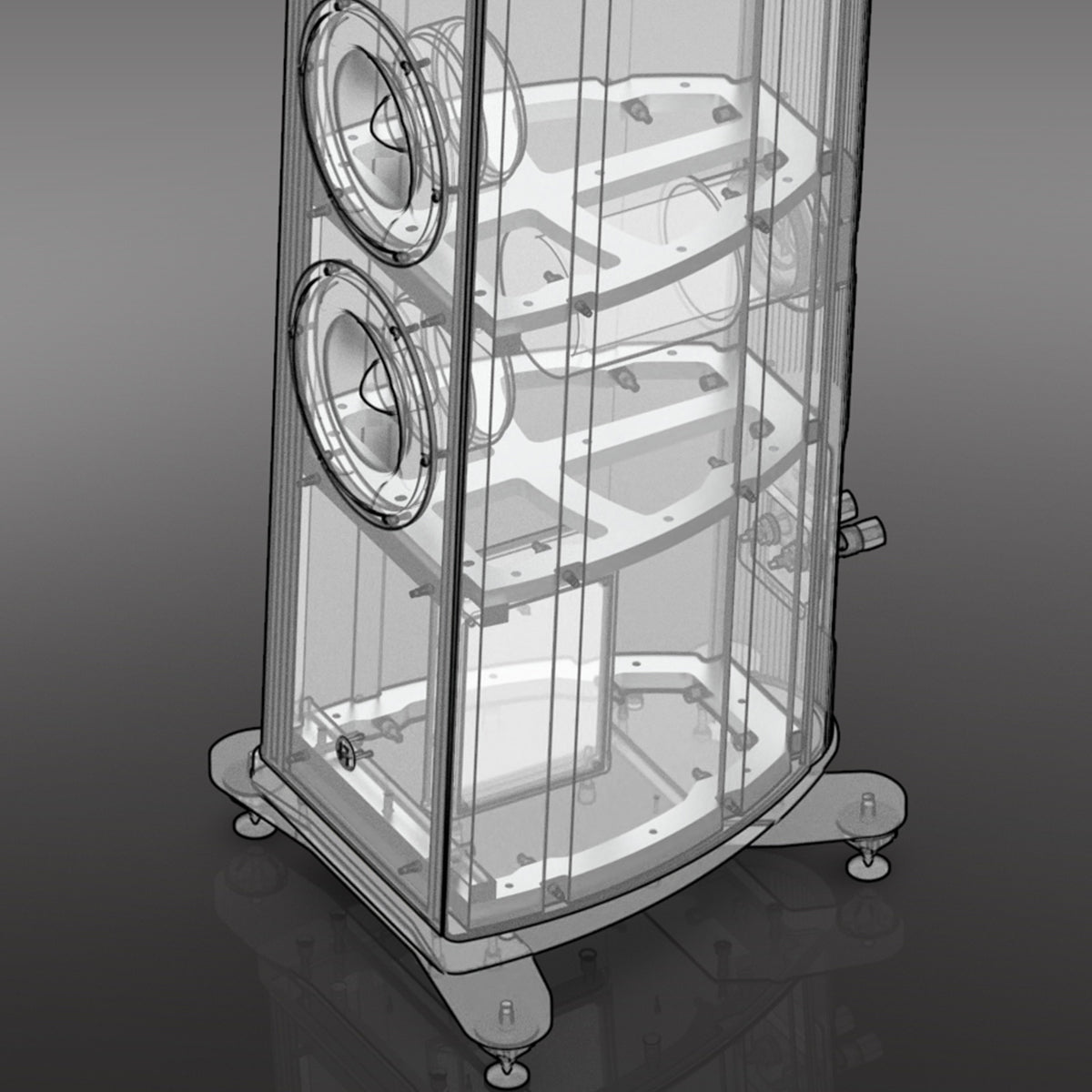 At PH AUDIO, we employ specialized aluminium alloy manufacturing techniques to optimized cabinet stiffness, mass, and internal damping. Meticulous control over the sound wave reflection modes within the enclosure effectively mitigates resonance and standing waves, culminating in the attainment of pristine, natural, and high-fidelity acoustic characteristics for our enclosures.